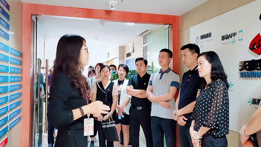 2020年7月7日下午,共青團臨滄市委書(shū)記丁玲一行15人在共青團昆明市委副書(shū)記林勤同志及共青團西山區委書(shū)記吳陽(yáng)青同志的陪同下來(lái)到天度集團,圍繞青年電商創(chuàng )業(yè)、直播帶貨、電商扶貧等內容進(jìn)行考察交流