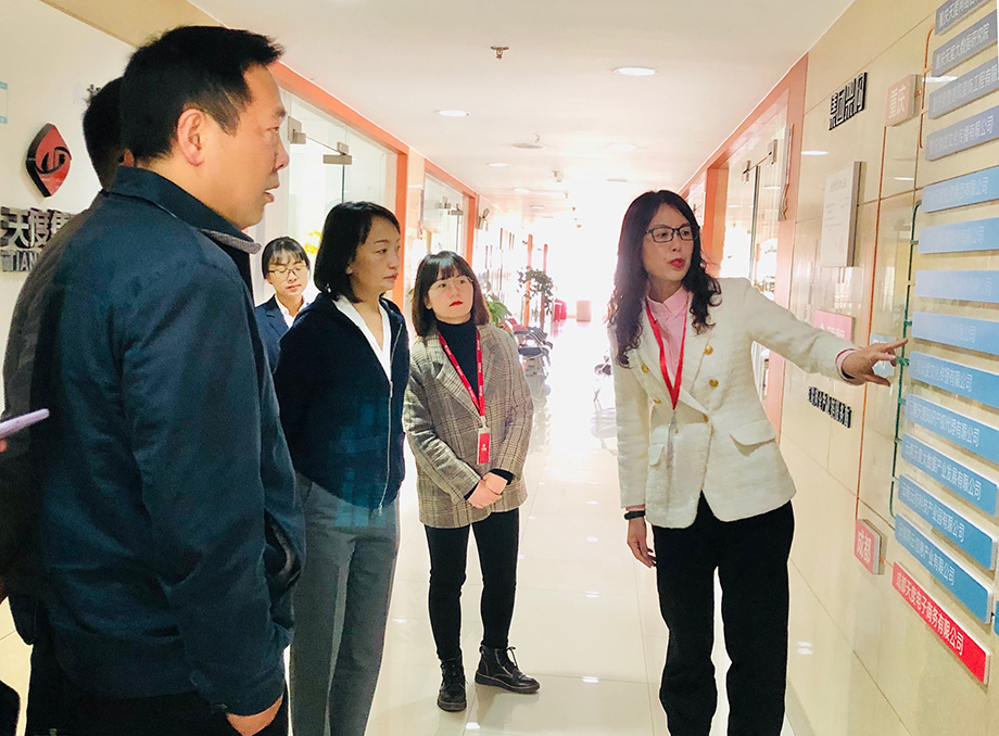 天度集團云南蔚嵐信息技術(shù)有限公司總經(jīng)理陳玉鳳向董局長(cháng)一行詳細介紹了集團業(yè)務(wù)發(fā)展情況和數字產(chǎn)業(yè)投資項目,并闡述了集團在電商扶貧和數字鄉村等領(lǐng)域所取得的成果。
