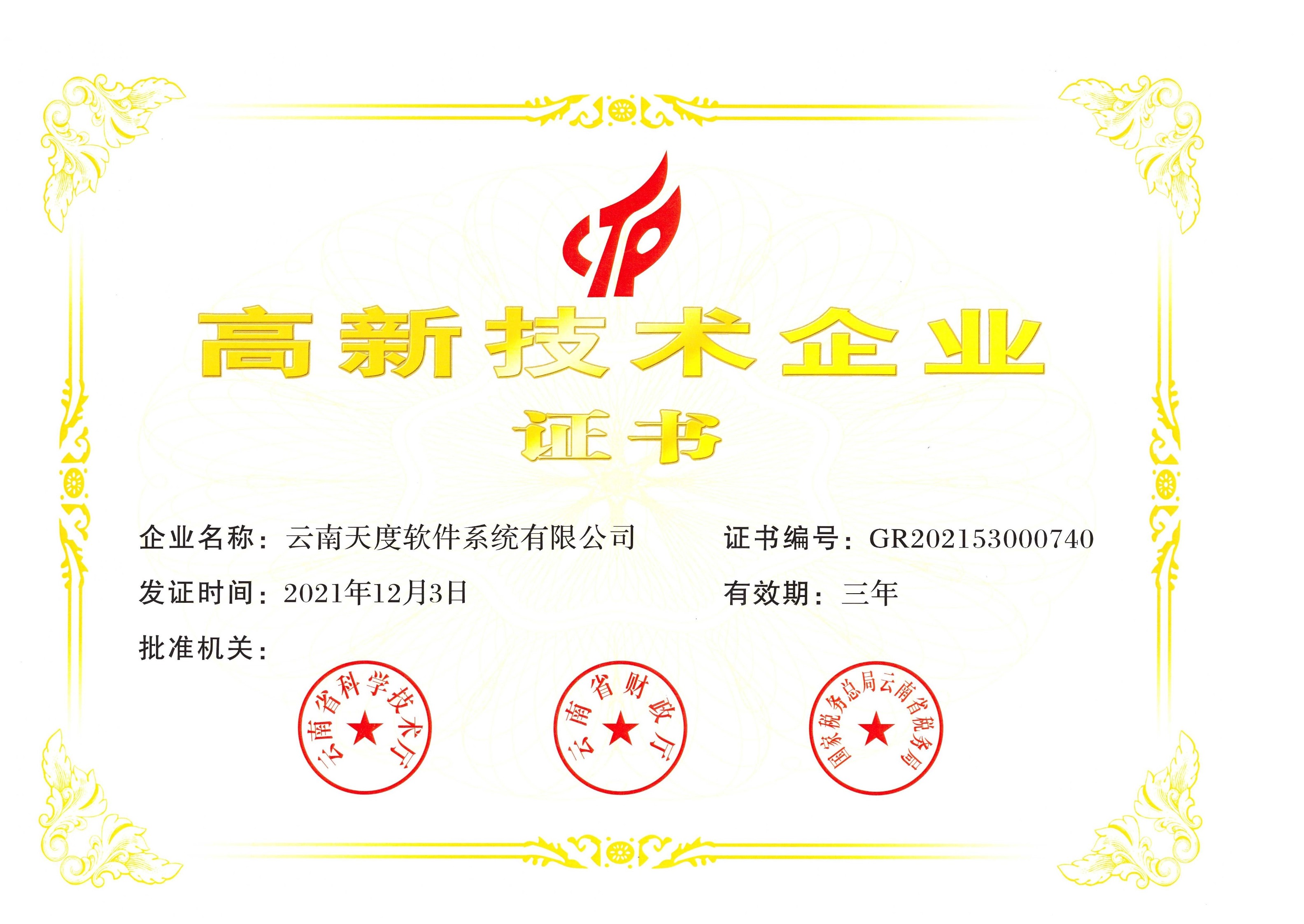 5家國家高新技術(shù)企業(yè)認證