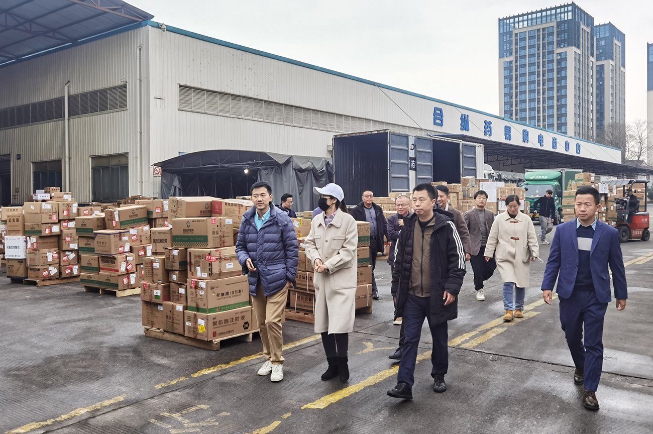 14日下午,考察團到達此次考察交流的第一站,四川合縱藥易購醫藥股份有限公司電商基地,受到了四川合縱藥易購醫藥股份有限公司董事、高級副總裁李宇欣帶領(lǐng)的相關(guān)管理團隊的熱情接待。四川合縱藥易購醫藥股份有限公司是中國首家醫藥產(chǎn)業(yè)互聯(lián)網(wǎng)上市企業(yè),是一家數智醫藥大健康生態(tài)型企業(yè)。業(yè)務(wù)涵蓋醫藥新零售、醫藥B2B電商、數字化賦能、醫藥批發(fā)、醫藥公共服務(wù)、醫藥供應鏈、智能物流、C端矩陣、互聯(lián)網(wǎng)醫療、醫藥健康金融、大健康管理等眾多板塊。為全產(chǎn)業(yè)鏈合作企業(yè)提供優(yōu)質(zhì)產(chǎn)品、先進(jìn)平臺、豐富資源、創(chuàng )新技術(shù)與完善服務(wù),助力生態(tài)伙伴加速增長(cháng)與永續發(fā)展,共同構建數智醫藥大健康產(chǎn)業(yè)鏈新生態(tài)。