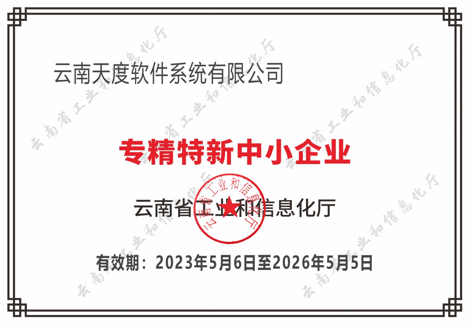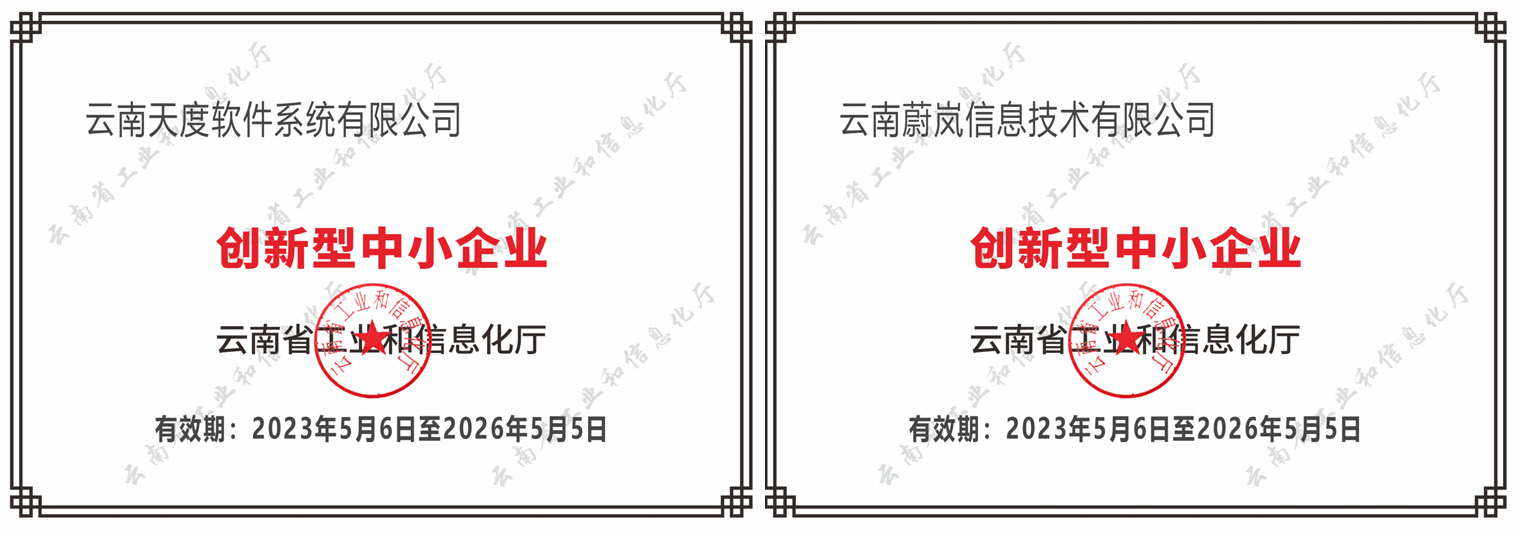 天度軟件入選云南省專(zhuān)精特新中小企業(yè)、創(chuàng )新型中小企業(yè)、國家科技型中小企業(yè)名單