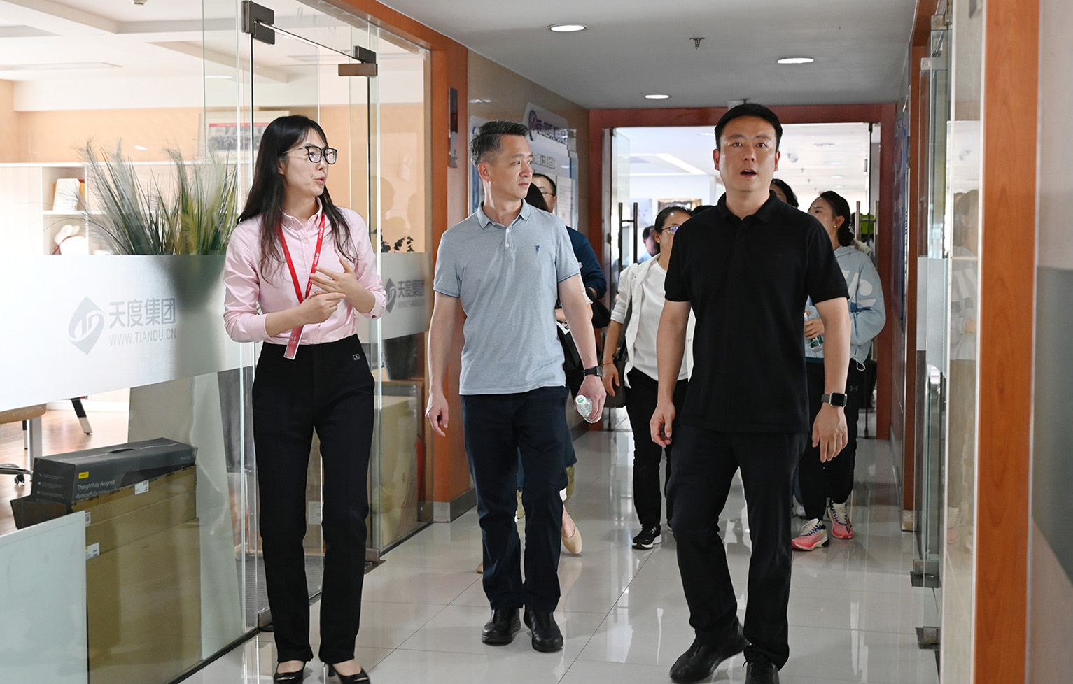 匯報結束后,調研組還參觀(guān)了集團總部,了解企業(yè)經(jīng)營(yíng)發(fā)展情況。郭亮呈對區網(wǎng)聯(lián)會(huì )工作給予高度評價(jià),并邀請天度集團到晉寧考察、交流、合作。