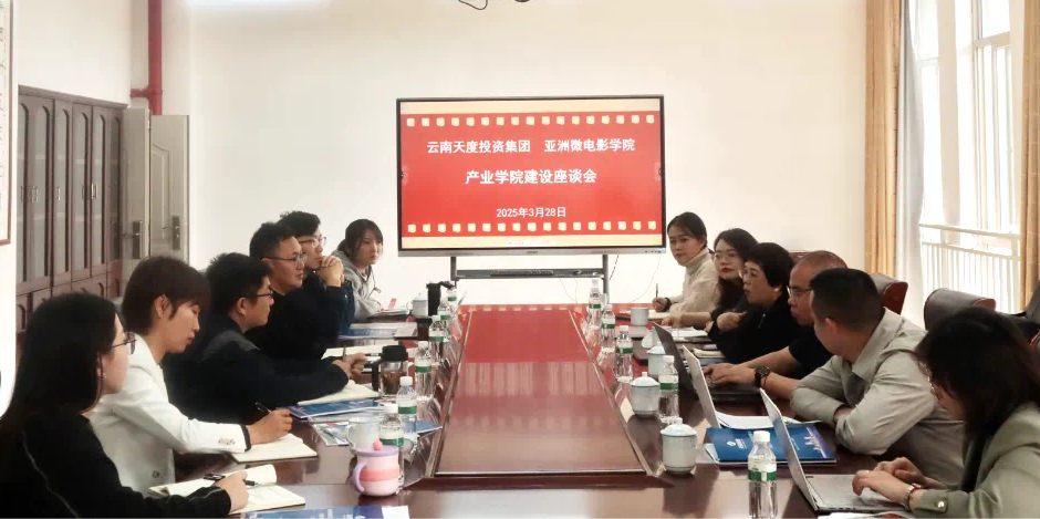 為深入貫徹落實(shí)國家產(chǎn)教融合戰略部署,破解邊疆影視人才供給與產(chǎn)業(yè)需求的結構性矛盾,3月28日,云南天度投資集團與亞洲微電影學(xué)院召開(kāi)產(chǎn)業(yè)學(xué)院建設座談會(huì )。雙方圍繞“以影視為載體、以產(chǎn)業(yè)為紐帶、以邊疆為特色”主題,就構建“四鏈融合”育人體系、打造產(chǎn)教協(xié)同創(chuàng )新生態(tài)達成戰略共識。云南天度投資集團有限公司總經(jīng)理陳俊園、天度科技產(chǎn)業(yè)發(fā)展有限公司總經(jīng)理胡婷婷,學(xué)院黨總支書(shū)記劉紹彬、副院長(cháng)夏麗娜及校企雙方代表10余人參加會(huì )議,學(xué)院黨總支副書(shū)記、主持工作副院長(cháng)陳彥雄主持會(huì )議。