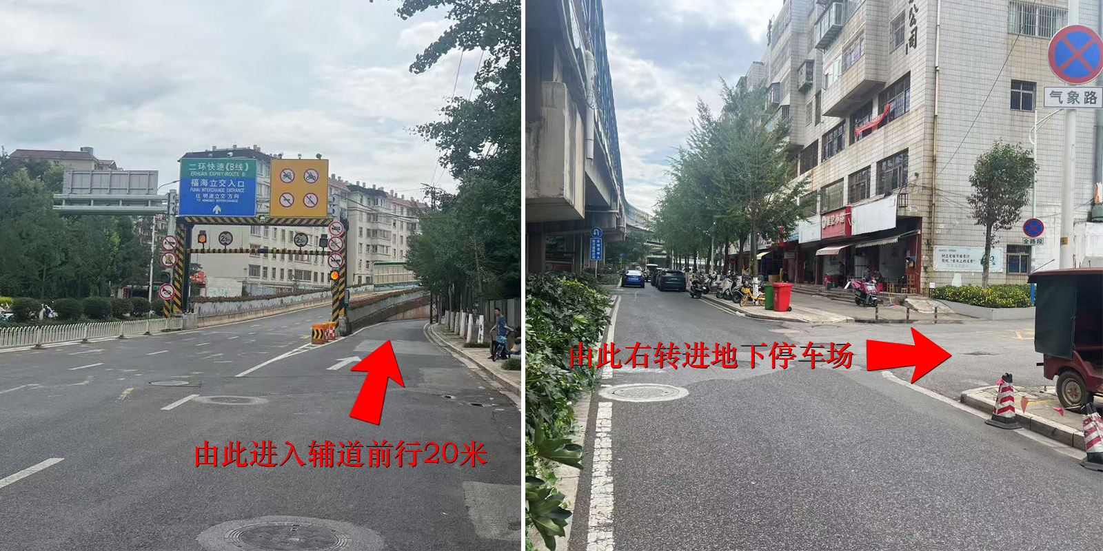 開(kāi)車(chē)路線(xiàn)導航:請沿著(zhù)氣象路上二環(huán)方向,按左上圖所示走輔道(不要上高架)前行20米,按右上圖所示右轉下地下停車(chē)場(chǎng),進(jìn)入停車(chē)場(chǎng)急左轉直行下一層進(jìn)入負三樓,在A(yíng)4棟(A座寫(xiě)字樓)電梯口(天度集團專(zhuān)用停車(chē)位,旁邊有值班人員)停車(chē),然后坐電梯至8樓。