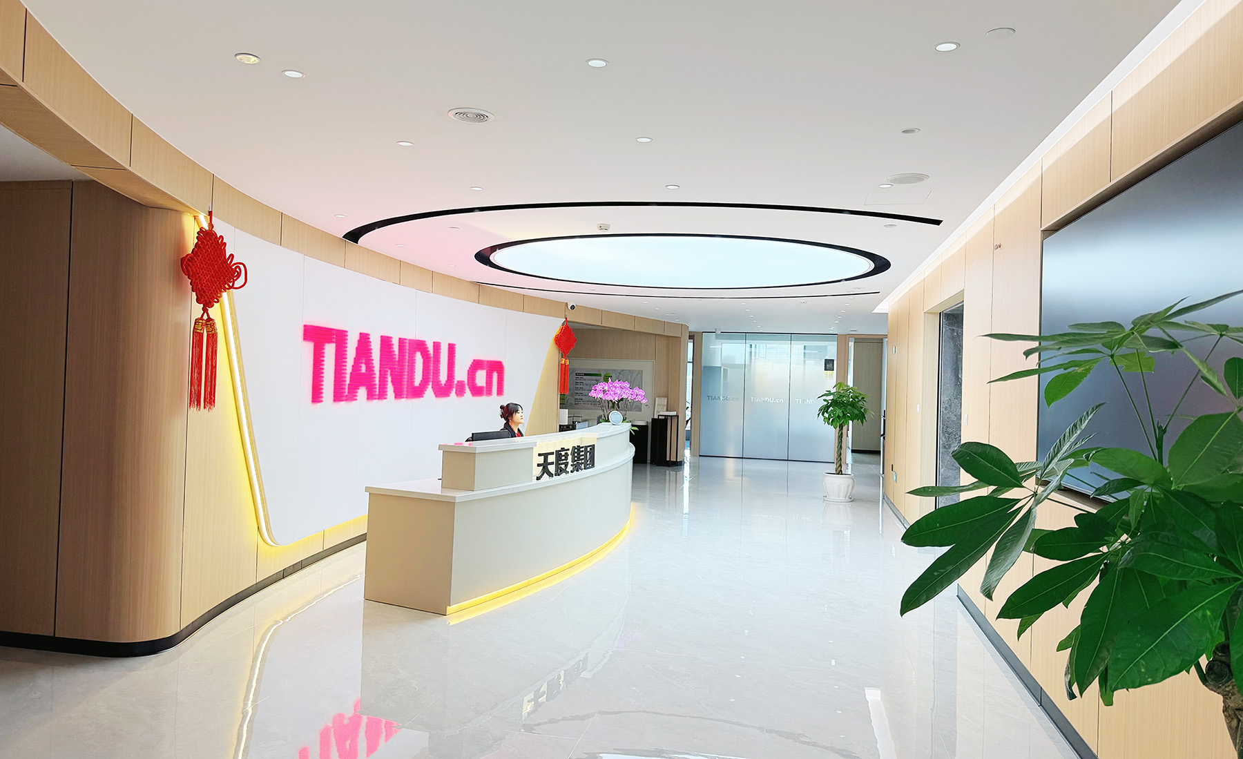 在天度成立二十周年之際,集團在融城優(yōu)郡A座寫字樓8樓購置了整層全新辦公空間,并打造成為集數字技術研發(fā)中心、電商直播基地、產教融合創(chuàng)新平臺等于一體的復合型空間,經過4個月的智能化裝修施工,目前新辦公室已經全面啟用,云紡國際商廈舊址即日起停止使用。