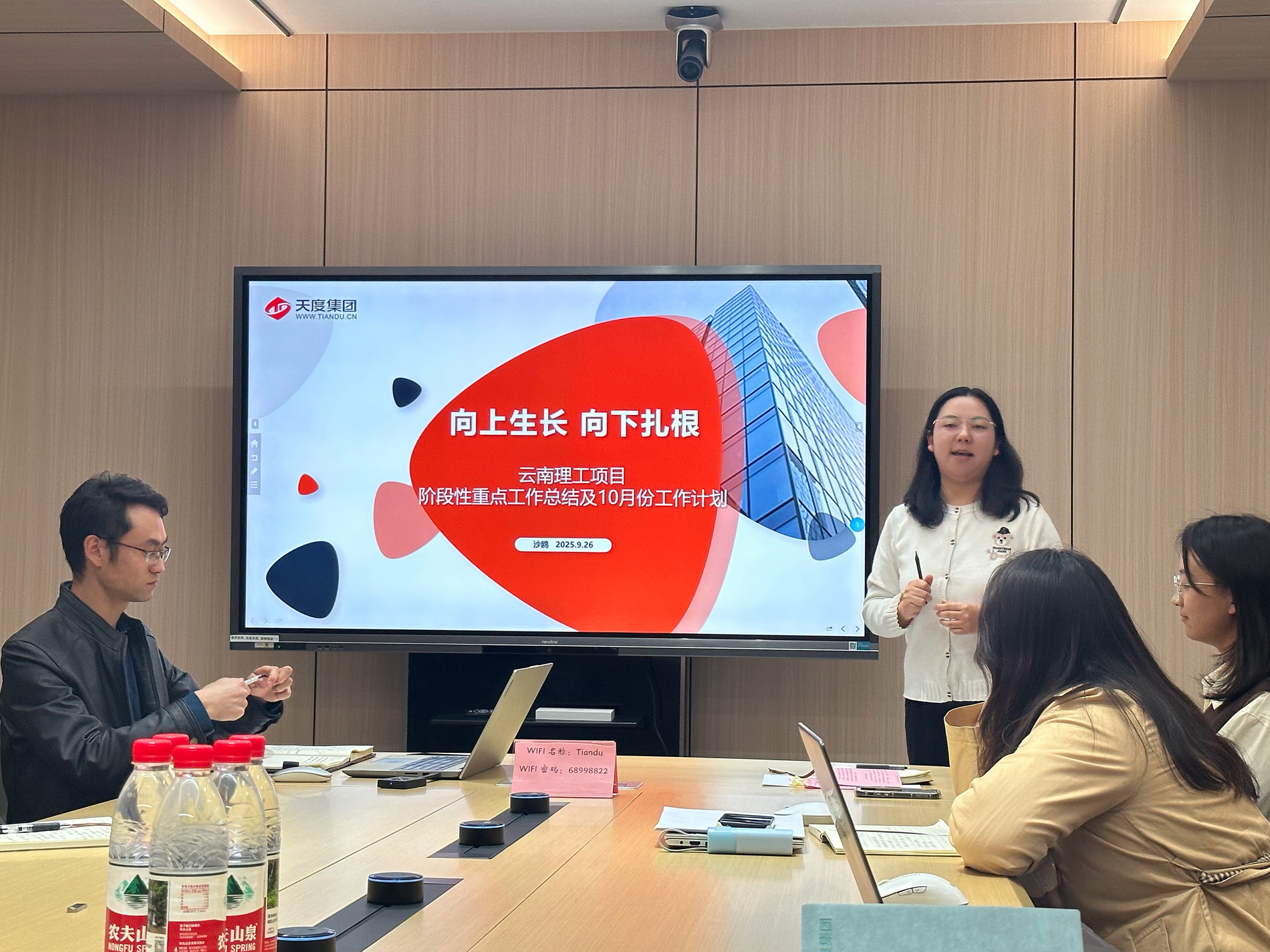 9月26日,云南天度科技產(chǎn)業(yè)發(fā)展有限公司階段總結暨工作部署會(huì )議在集團總部順利召開(kāi)。本次會(huì )議以“凝心聚力,共繪藍圖”為主題,系統梳理產(chǎn)教融合發(fā)展事業(yè)的前期工作成果,明確下一階段發(fā)展目標與實(shí)施路徑。天度數字商務(wù)產(chǎn)業(yè)學(xué)院及高校校企合作項目的管理及教師團隊齊聚一堂,集團總經(jīng)理陳俊園出席會(huì )議并作重要工作安排部署。