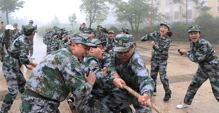 相比較剛開(kāi)始的魔鬼訓練,之后就輕松了一些,一來(lái)是大家已經(jīng)適應這種節奏了,二來(lái)教官也在日常訓練過(guò)程中加入了一些趣味活動(dòng)。例如以公司為單位的拔河比賽,雖然場(chǎng)地濕滑,狀況百出,但是大家誰(shuí)都不肯服輸,賽場(chǎng)上的氣勢如虹破竹。