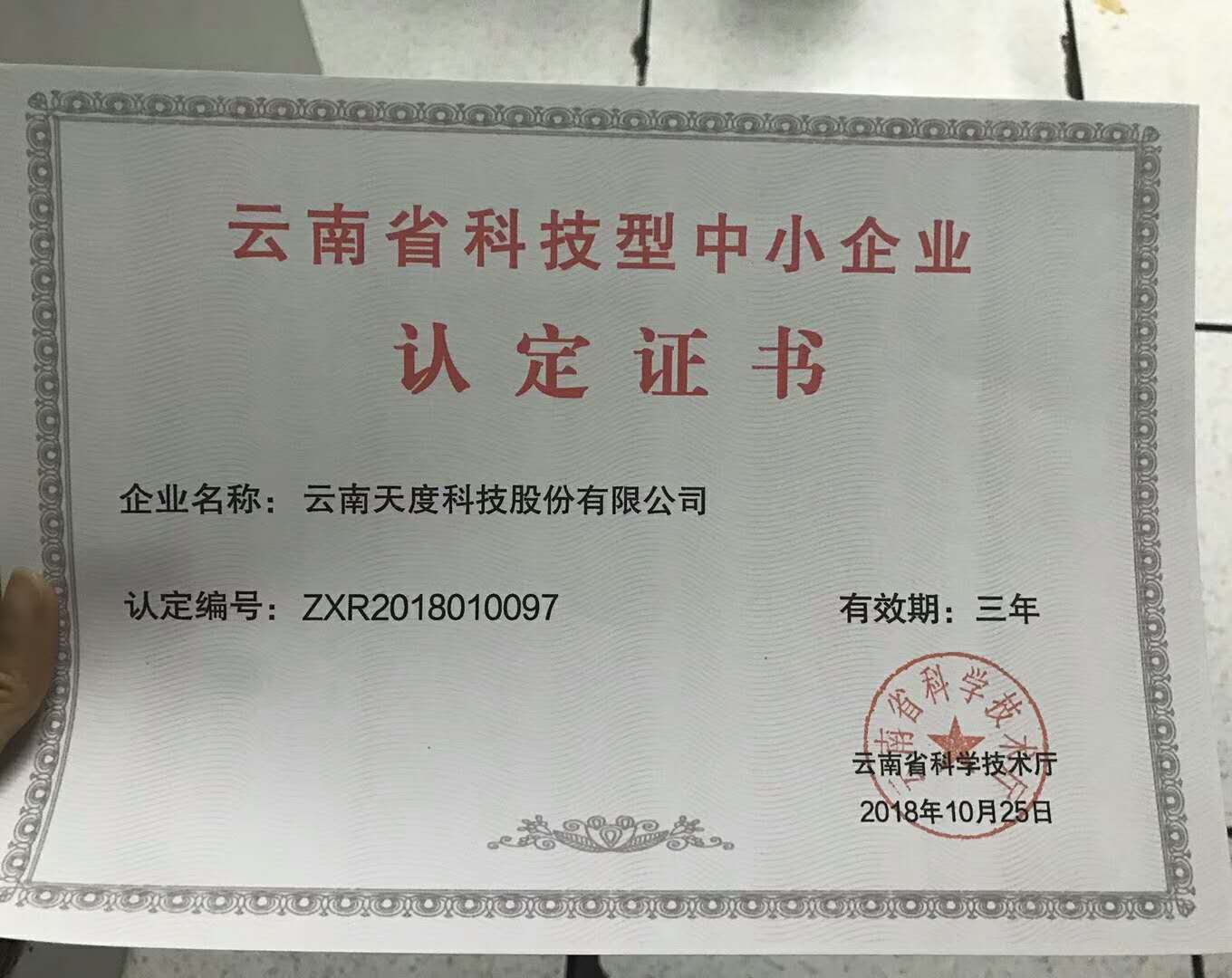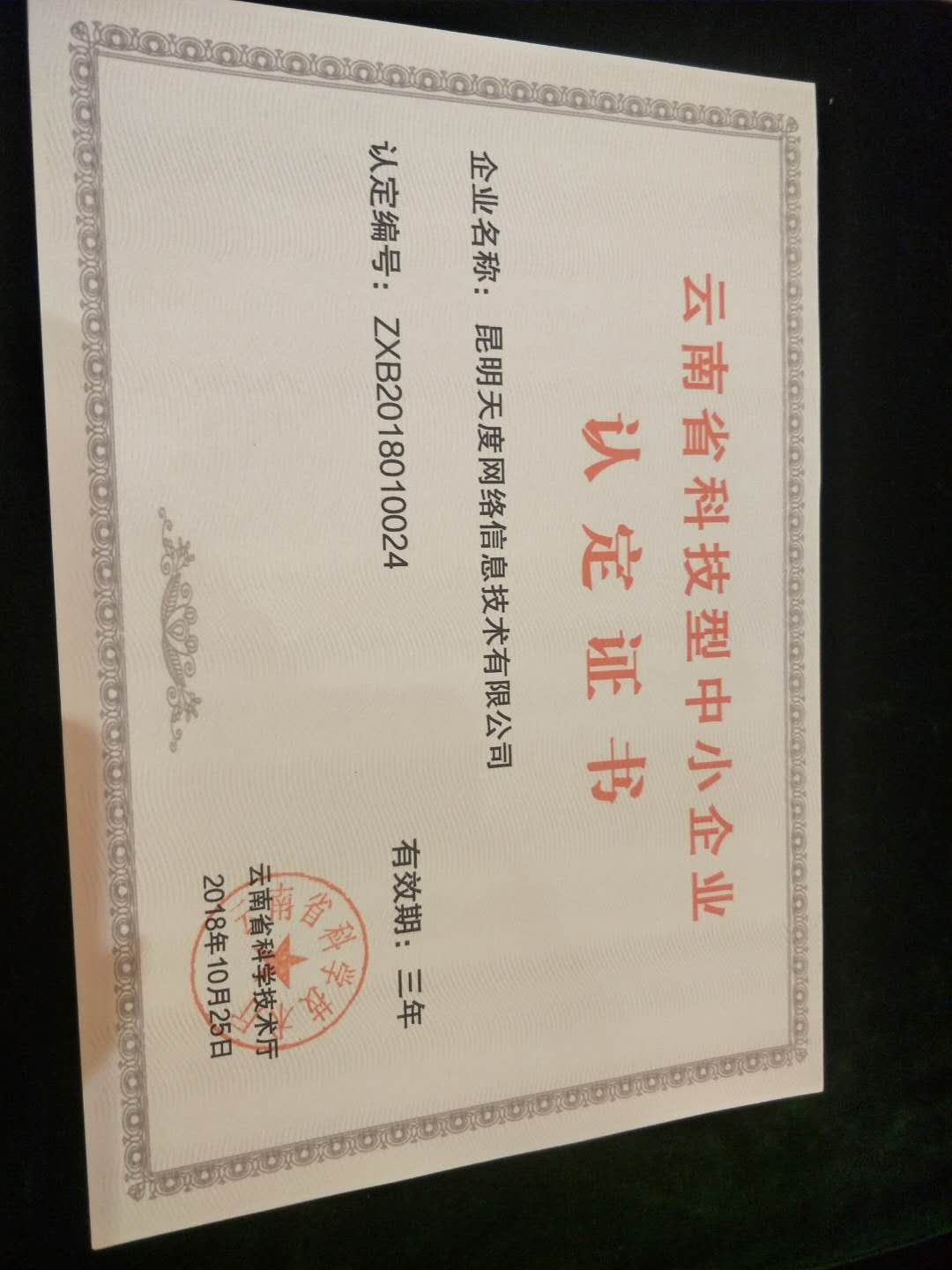 經(jīng)科技部門(mén)審核,確定天度符合科技型中小企業(yè)要求,3月29日,昆明天度網(wǎng)絡(luò )信息技術(shù)有限公司成功入庫登記成為2018年“全國科技型中小企業(yè)”!