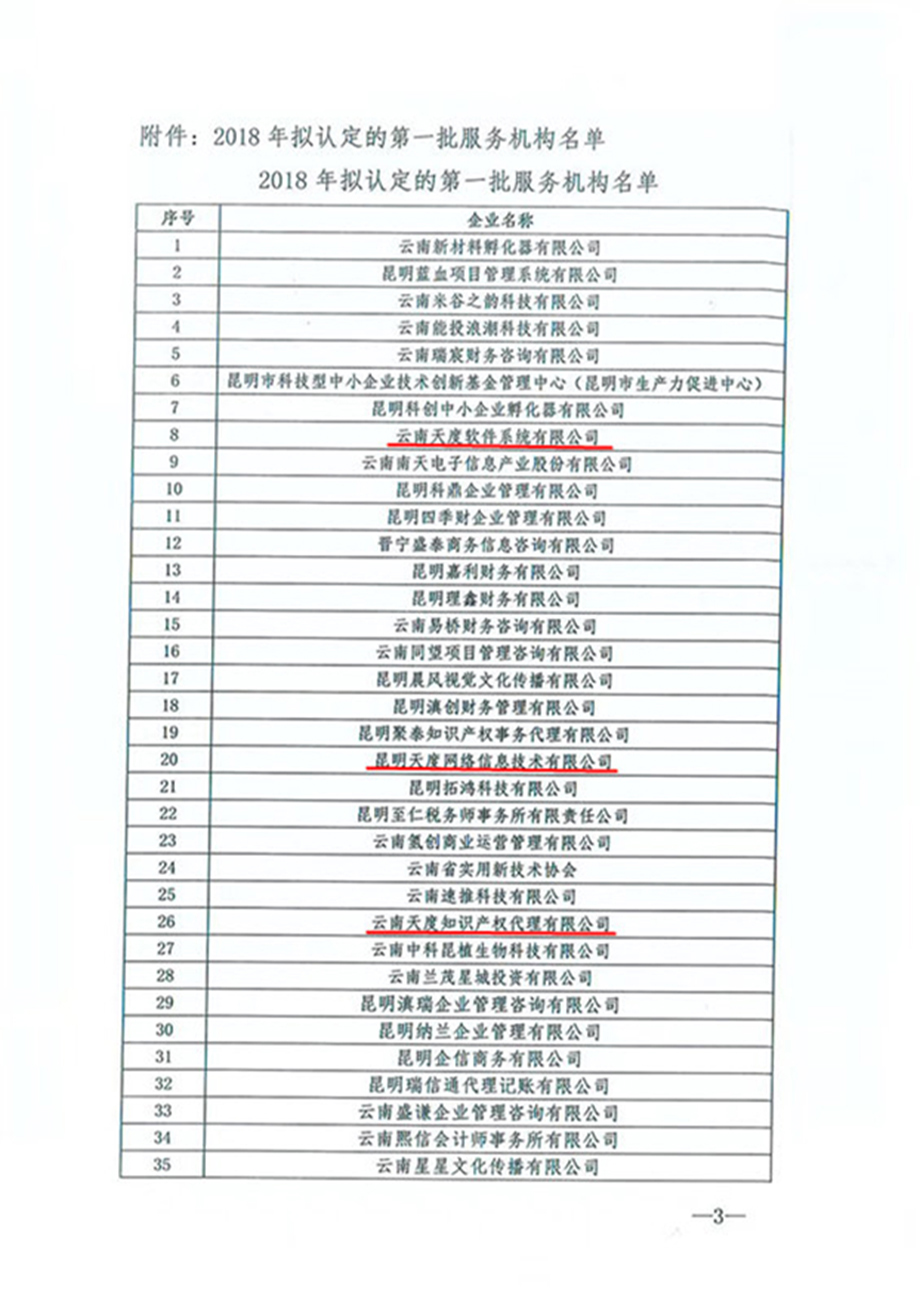 天度集團旗下三家企業(yè)(昆明天度網(wǎng)絡(luò )信息技術(shù)有限公司、云南天度知識產(chǎn)權代理有限公司、云南天度軟件系統有限公司)為認定的“昆明市小微企業(yè)創(chuàng )業(yè)創(chuàng )新服務(wù)券服務(wù)機構”,咨詢(xún)熱線(xiàn):0871-6899 8822。
