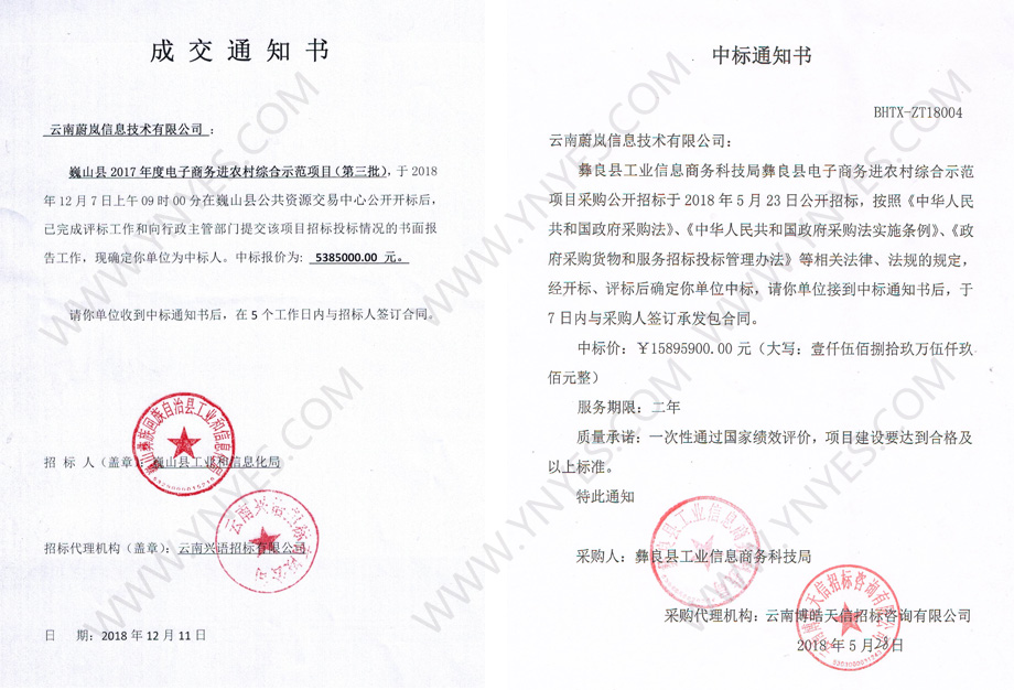蔚嵐中標巍山縣、彝良縣電子商務(wù)進(jìn)農村綜合示范項目