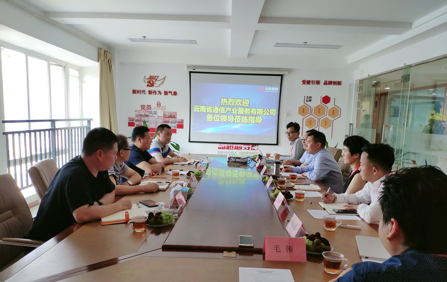云南省通信產(chǎn)業(yè)服務(wù)有限公司黨委書(shū)記、總經(jīng)理胡元等一行蒞臨天度集團考察調研