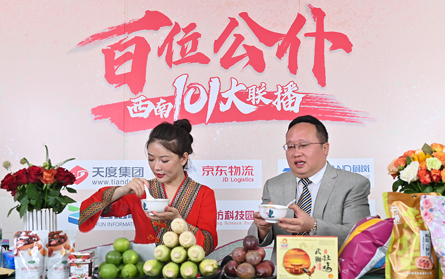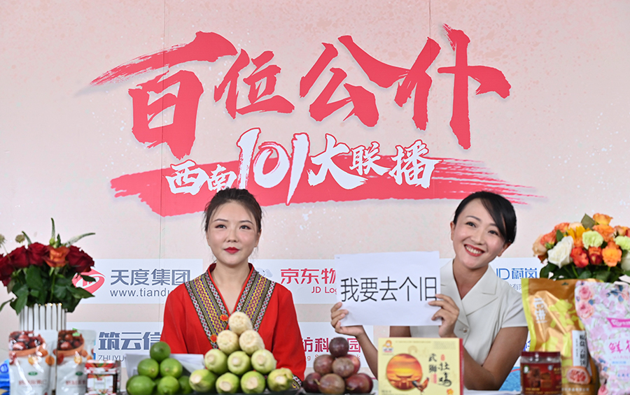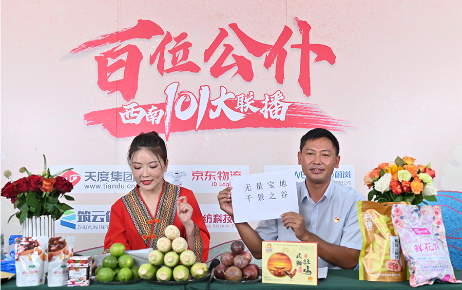 6月17日下午,“百位公仆,西南101大聯(lián)播”大型助農直播活動(dòng)在云紡科技園直播基地舉行,來(lái)自云南巍山、南澗、水富、個(gè)舊、開(kāi)遠、彝良、武定、景東、景谷等縣(市)的11位副縣(市)長(cháng),與四川知名電視主持人、直播記者郭秀一同走進(jìn)直播間,同框出鏡,為云南各地好貨代言,推動(dòng)農產(chǎn)品推廣上行,助力脫貧攻堅。近3小時(shí)的直播中,特色的農產(chǎn)品、實(shí)惠的價(jià)格,以及豐厚的贈品吸引了260多萬(wàn)網(wǎng)友圍觀(guān)。