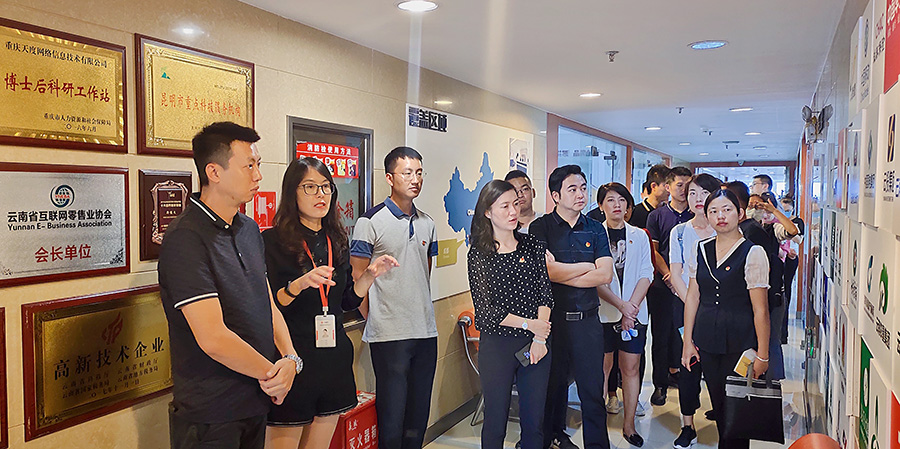 2020年7月7日下午,共青團臨滄市委書(shū)記丁玲一行15人在共青團昆明市委副書(shū)記林勤同志及共青團西山區委書(shū)記吳陽(yáng)青同志的陪同下來(lái)到天度集團,圍繞青年電商創(chuàng )業(yè)、直播帶貨、電商扶貧等內容進(jìn)行考察交流