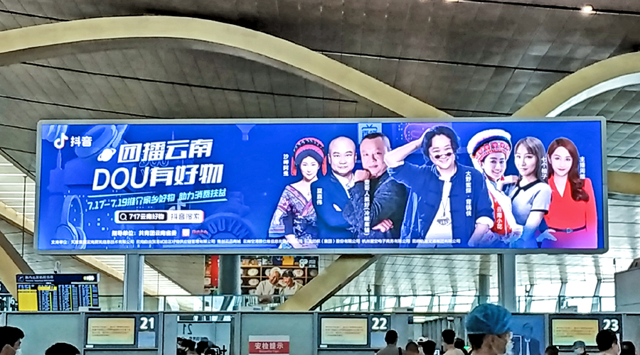 在活動(dòng)期間,昆明長(cháng)水國際機場(chǎng)國內國際出發(fā)到達機場(chǎng)入口戶(hù)外廣告、登機口、安檢口等共計86塊電子大屏廣告、昆明地鐵廣告、云紡科技園電子大屏和主要路口進(jìn)行了同步活動(dòng)預熱。