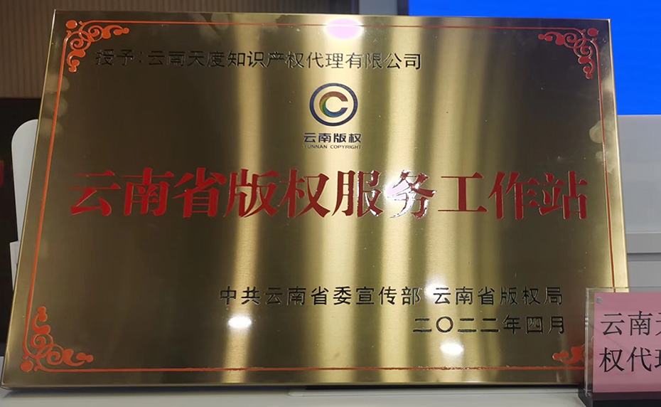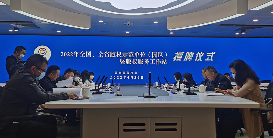 2022年全國、全省版權示范單位(園區)暨版權服務(wù)工作站授牌儀式今日舉行,云南天度知識產(chǎn)權代理有限公司等10家企業(yè)獲的“云南省版權服務(wù)工作站”授牌。
