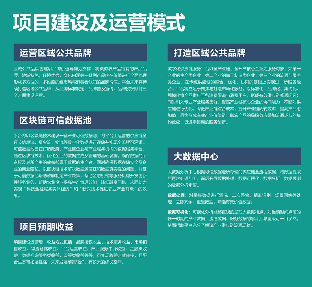 平臺將以區塊鏈技術(shù)建設一套產(chǎn)業(yè)可信數據池,將平臺上運營(yíng)的供應鏈全環(huán)節信息流、資金流、物流等數字化數據進(jìn)行存儲并實(shí)現全流程可溯源??尚艛祿刂荚诖蛟煺?、產(chǎn)業(yè)鏈企業(yè)與產(chǎn)業(yè)服務(wù)機構的數據服務(wù)平臺,通過(guò)區塊鏈技術(shù),優(yōu)化企業(yè)的數據生成及管理的基礎設施,確保數據的所有權及其所產(chǎn)生的效益都屬于數據的生產(chǎn)者,同時(shí)確保數據存儲安全及企業(yè)的商業(yè)隱私。以區塊鏈技術(shù)解決數據源信任和數據真實(shí)性的問(wèn)題,并基于可信數據池幫助政府制定產(chǎn)業(yè)決策,幫助金融機構等服務(wù)機構開(kāi)發(fā)創(chuàng )新性服務(wù)業(yè)務(wù),幫助農業(yè)企業(yè)提高生產(chǎn)管理效能,降低融資門(mén)檻,從而助力實(shí)現“科技金融服務(wù)實(shí)體經(jīng)濟”和“新興技術(shù)促進(jìn)農業(yè)產(chǎn)業(yè)升級”的效果。