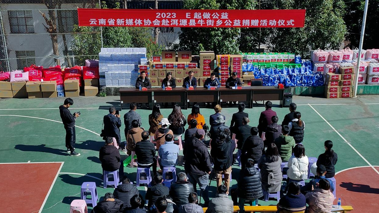 1月13日,云南省“2023 E起做公益”活動(dòng)在大理州洱源縣啟動(dòng),當天,云南省新媒體協(xié)會(huì )組織了9家互聯(lián)網(wǎng)企業(yè)前往洱源縣牛街鄉開(kāi)展首場(chǎng)公益活動(dòng),向當地群眾捐贈了急需的電腦及生活物資1112件,解決了群眾的燃眉之急。群眾說(shuō),“這是我們收到的最好的新年禮物!”