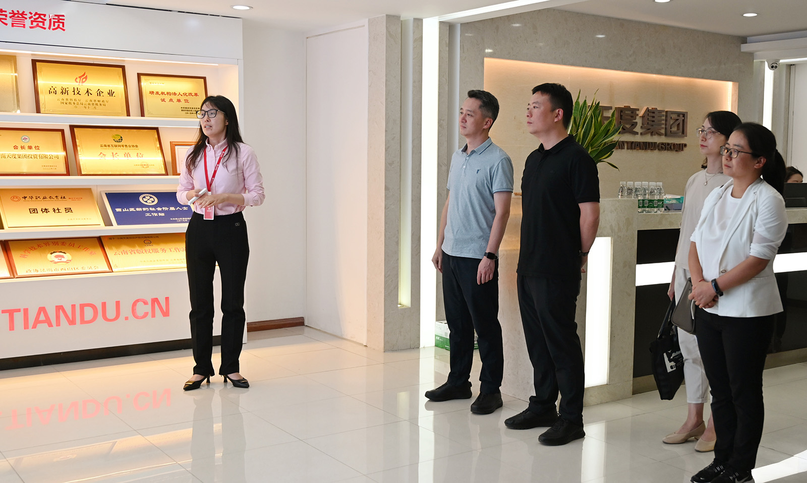 6月25日,為進(jìn)一步推進(jìn)統戰工作的橫向交流,促進(jìn)統戰工作提質(zhì)增效,晉寧區委常委、區委統戰部部長(cháng)郭亮呈等領(lǐng)導一行到西山區調研,并走訪(fǎng)西山區網(wǎng)聯(lián)會(huì )會(huì )長(cháng)單位──云南天度科技股份有限公司,西山區委副書(shū)記莊研參加調研。